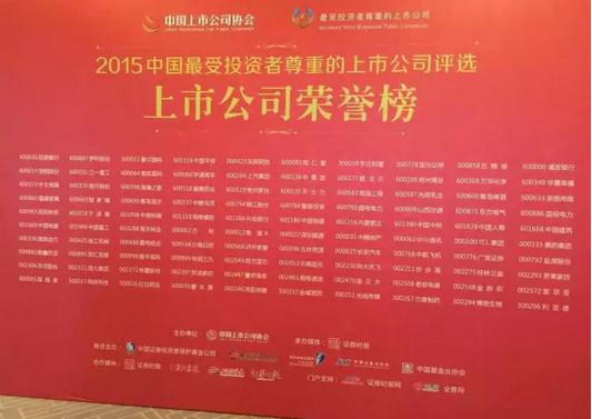 太阳成集团tyc138荣获“2015中国最受投资者尊重的百家上市公司”奖项