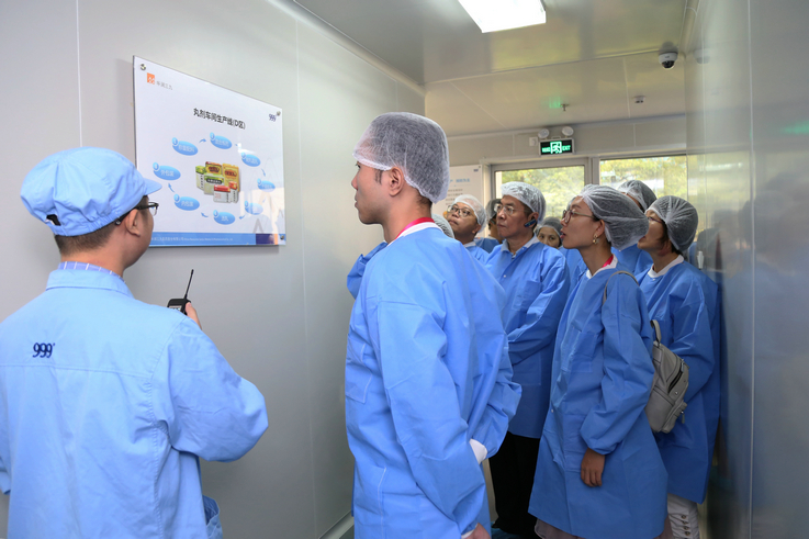 活动中,各位嘉宾实地参观荣获华润集团“六星级工厂”的观澜基地,深入丸剂、颗粒剂等车间生产一线,了解药品制造的产能、工艺、工序、流程,以及产品质量控制、安全环保措施等情况。