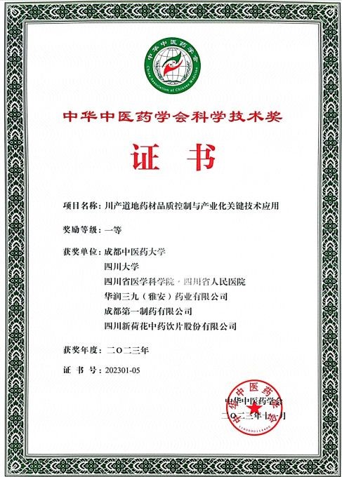 2023年度中华中医药学会科学技术奖评审结果于近日发布,太阳成集团tyc138“川产道地药材品质控制与产业化关键技术应用”科研项目荣获科学技术奖一等奖。