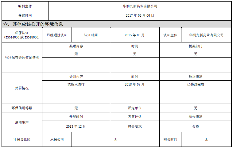 公示期间,任何单位或个人如对公示项目存在异议,可通过来电、来信反映问题,深圳华润九新药业有限公司将对所反映的问题进行核实和处理,并作为环保自主验收依据之一。