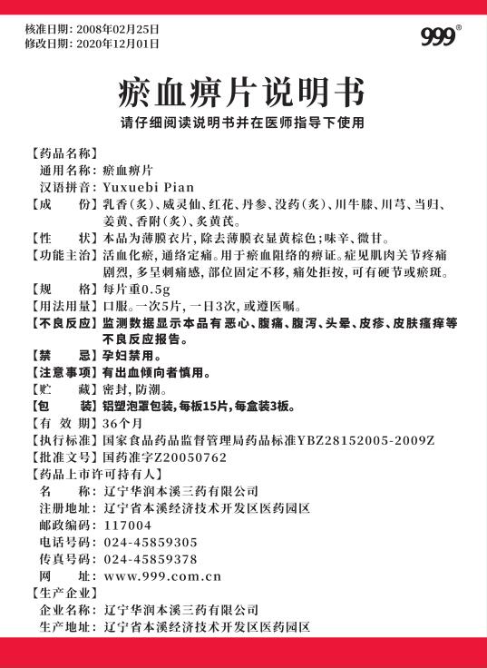 瘀血痹片15片x3板