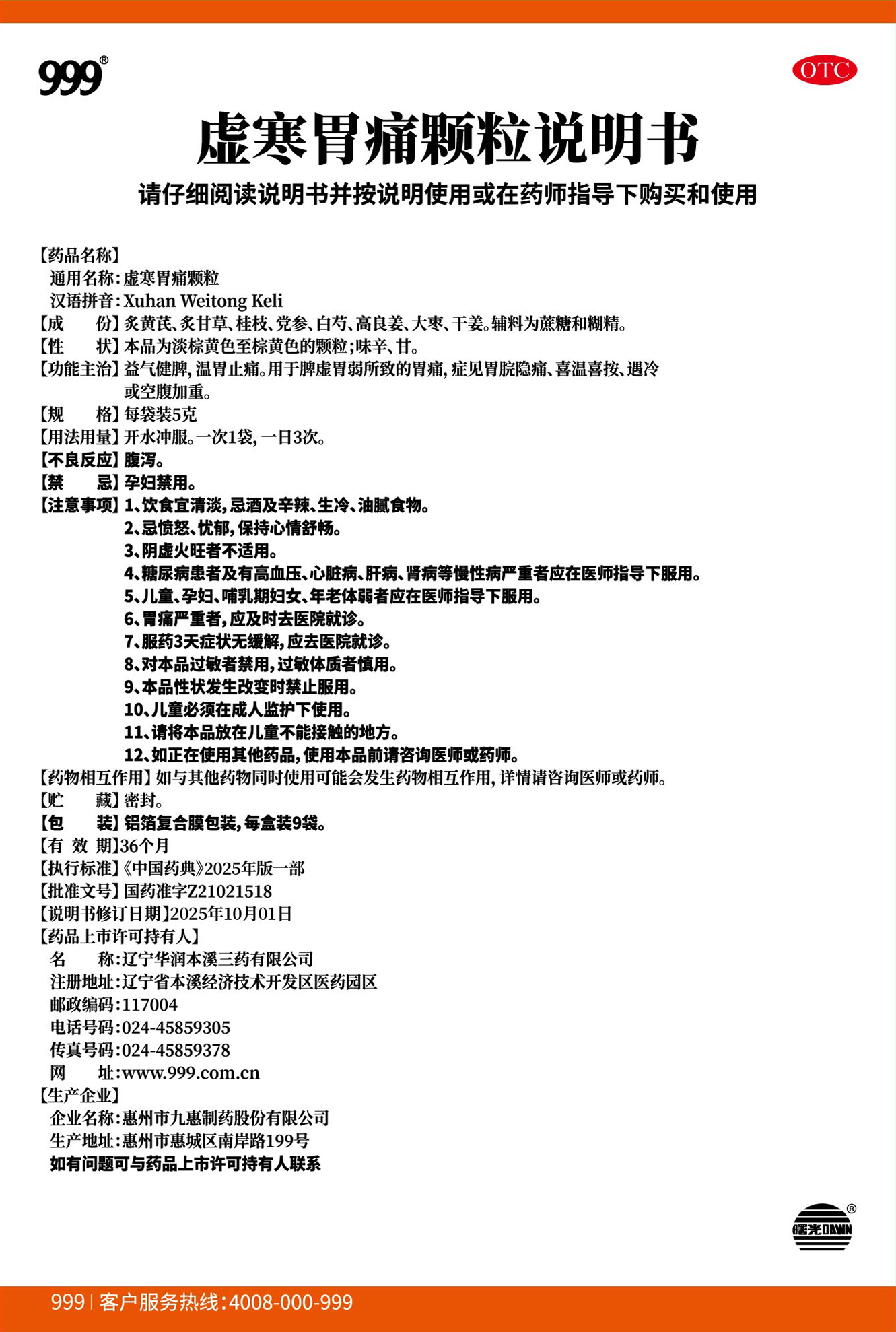 虚寒胃痛颗粒5克x9袋