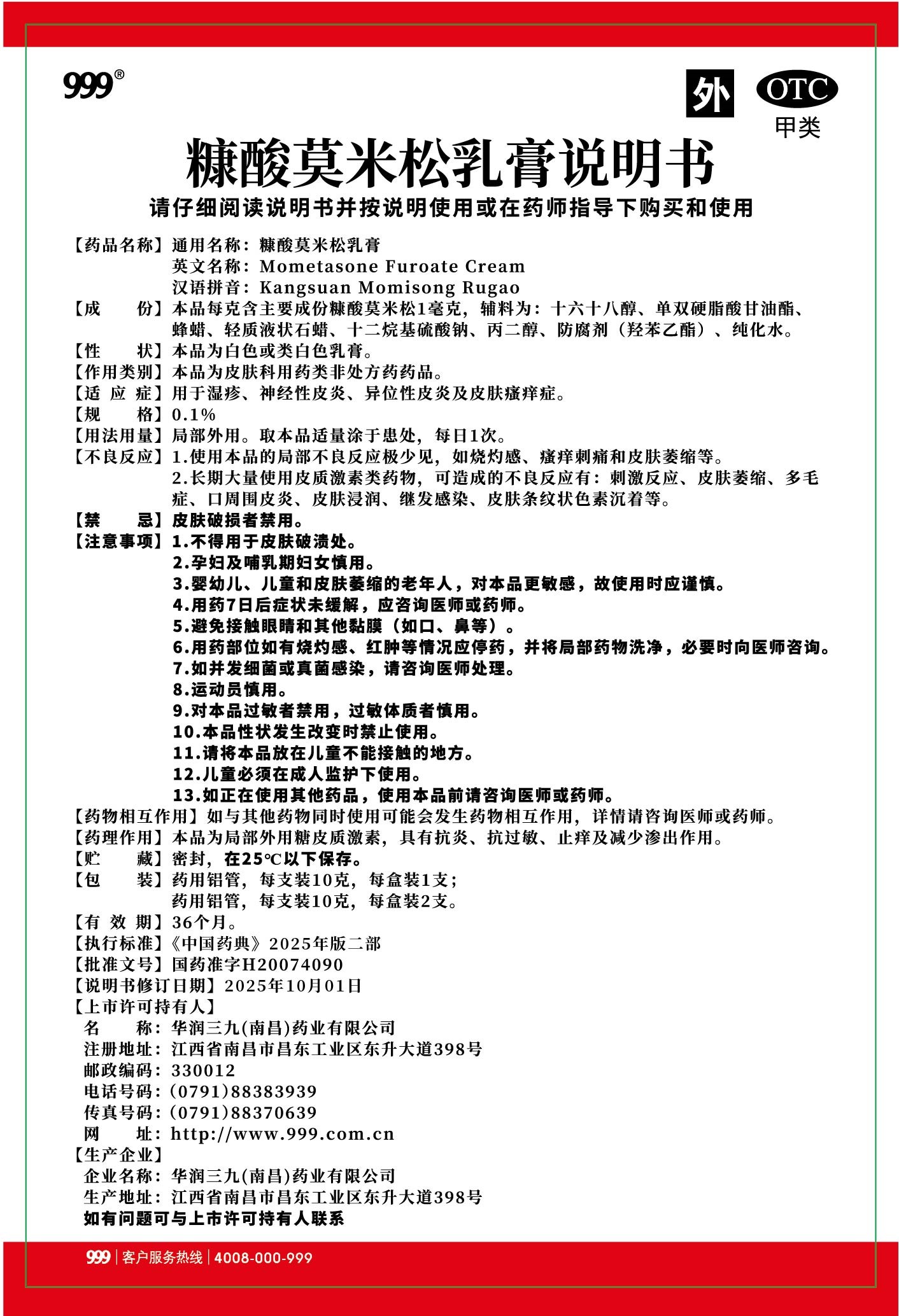 糠酸莫米松乳膏-南昌三九(铝管装)