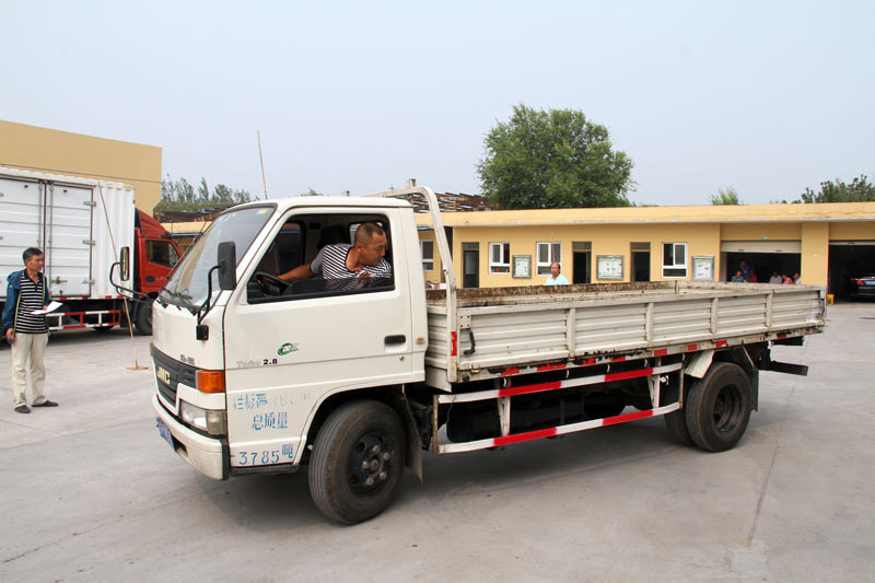 货车驾驶员在进行倒车入库演练。