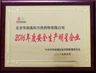 2017年1月18日,北京华润高科天然药物有限公司获评中关村科技园区延庆工业园2016年度“安全生产明星企业”,这是对华润高科过去一年安全生产工作的肯定。