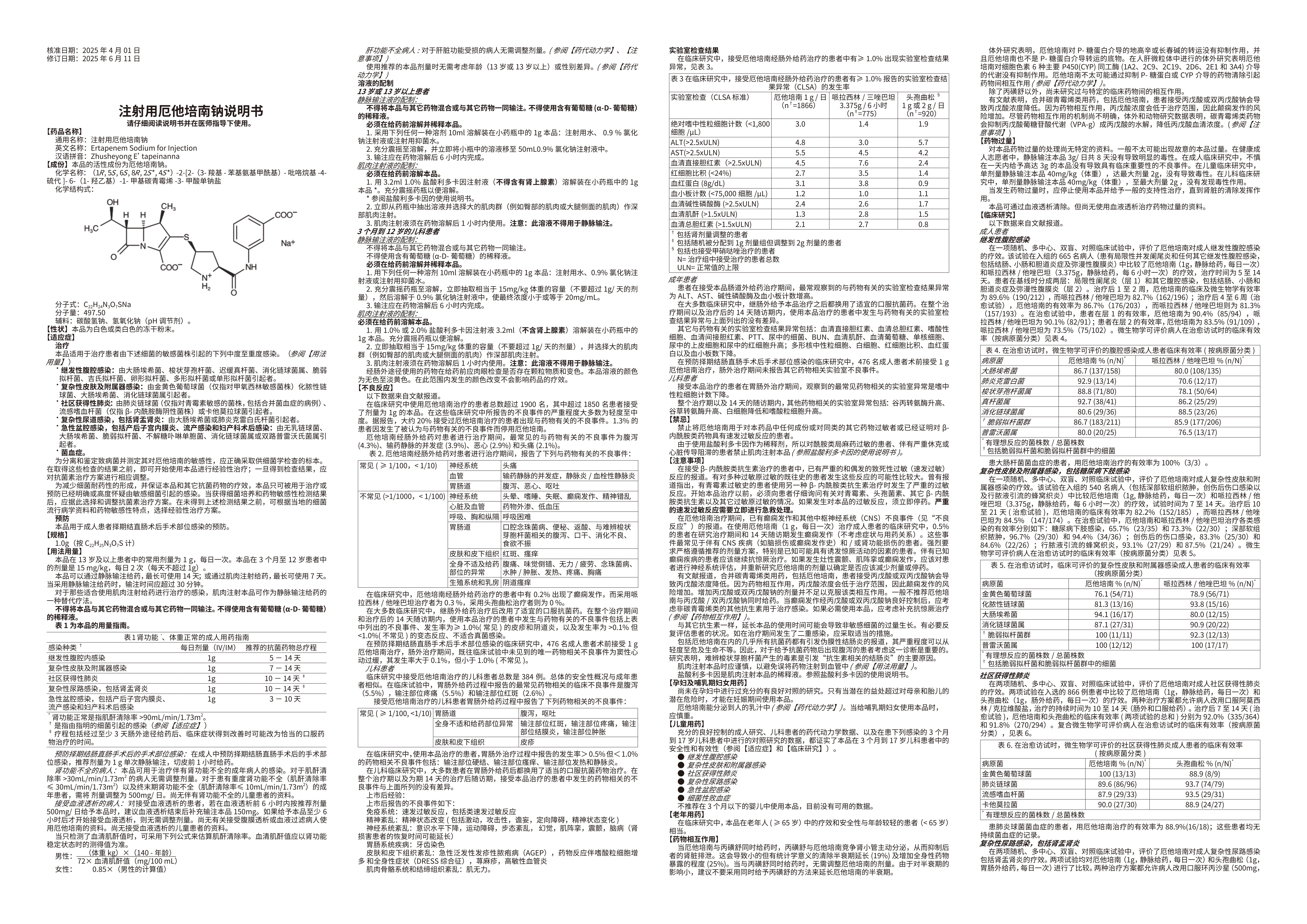 可用于治疗患者由下述细菌的敏感菌株引起的下列中度至重度感染。 继发性腹腔感染:由大肠埃希菌、梭状芽孢杆菌、迟缓真杆菌、消化链球菌属、脆弱拟杆菌、吉氏拟杆菌、卵形拟杆菌、多形拟杆菌或单形拟杆菌引起者。 复杂性皮肤及附属器感染:由金黄色葡萄球菌(仅指对甲氧西林敏感菌株)化脓性链球菌、大肠埃希菌、消化链球菌属引起者。 社区获得性肺炎:由肺炎链球菌(仅指对青霉素敏感的菌株,包括合并菌血症的病例)、流感嗜血杆菌(仅指β-内酰胺酶阴性菌株)或卡他莫拉球菌引起者。 复杂性尿道感染,包括肾盂肾炎:由大肠埃希菌或肺炎克雷白氏杆菌引起者。 急性盆腔感染,包括产后子宫内膜炎、流产感染和妇产科术后感染:由无乳链球菌、大肠埃希菌、脆弱拟杆菌、不解糖卟啉单胞菌、消化链球菌属或双路普雷沃氏菌属引起者。 菌血症。 且本品可用于成人患者择期结直肠术后手术部位感染的预防。