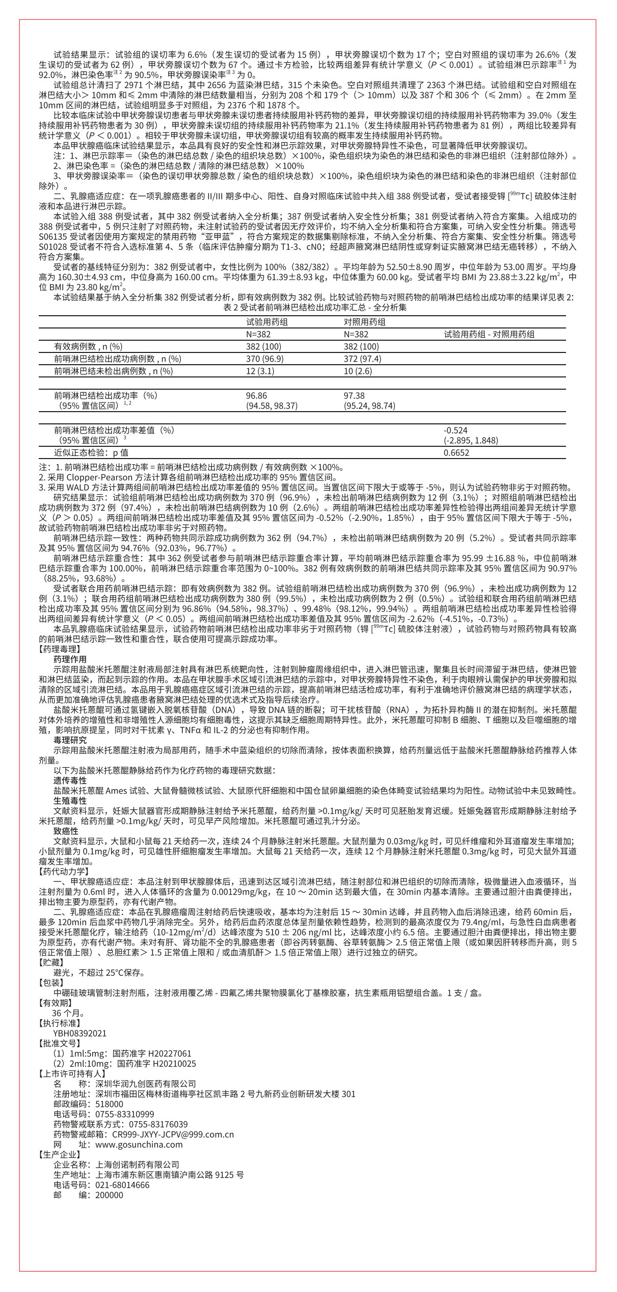 用于甲状腺手术区域引流淋巴结的示踪;用于乳腺癌前哨淋巴结的示踪。