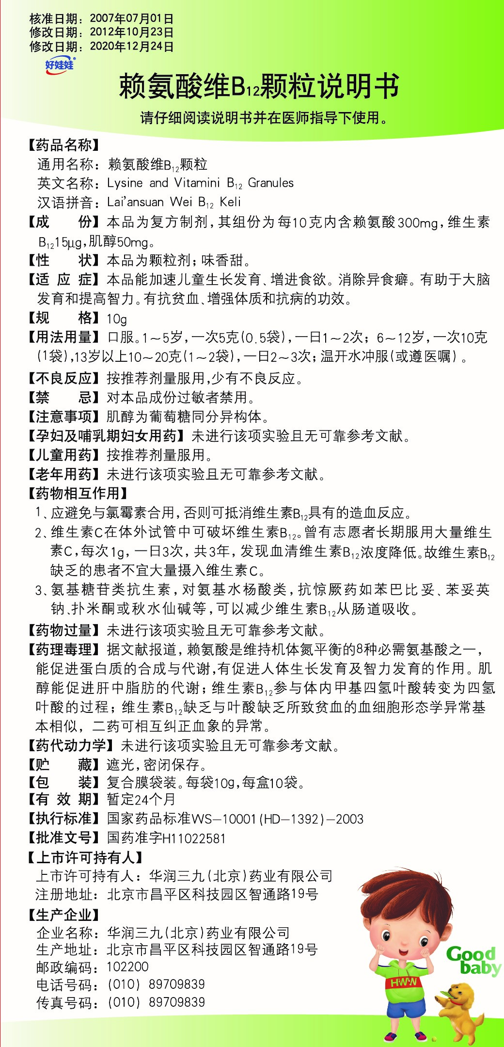 <dt>药品名称</dt><dd> 赖氨酸维B12颗粒</dd>