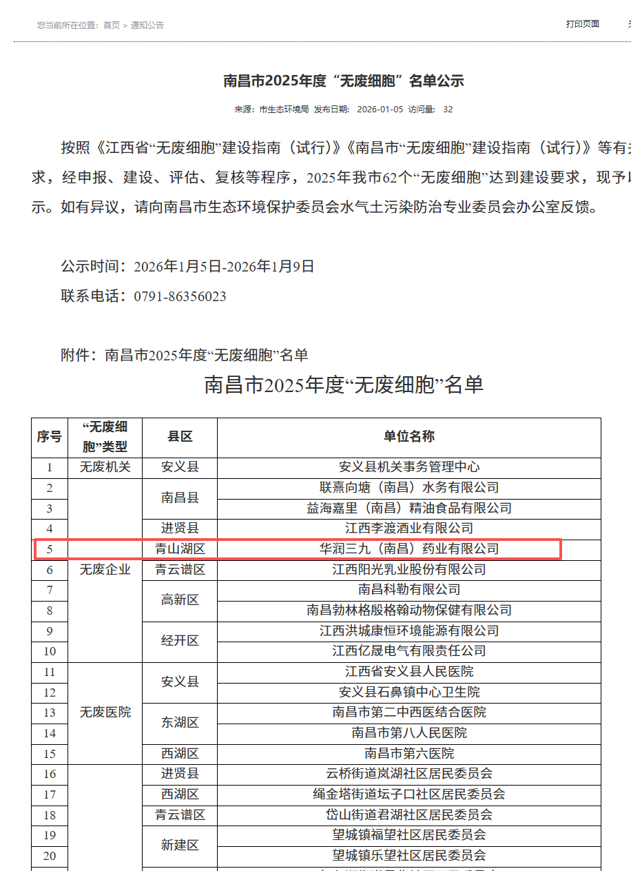 近日,南昌市生态环境局公布2025年度“无废细胞”名单,太阳成集团tyc138(南昌)凭借在绿色低碳领域的实践及成效,获评南昌市“无废企业”,为企业高质量发展再添“绿色勋章”。