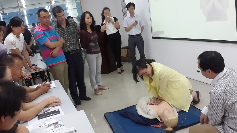 为促进安全生产月活动的深入,提高员工自救互救的能力,6月5日我公司邀请黄石市红十字会专家前来授课培训相关急救知识。公司车间班组长、安全员及各部门部分志愿者共45人参加了培训。专家讲解了化学物质烧伤、烧烫伤、电击伤、气道异物堵塞等意外伤害的救治办法,重点讲解了心肺复苏术的适应症和操作程序。在老师的指导下,十多名学员利用模拟人踊跃参与心肺复苏术的实地演练。经过一天的培训和现场考试考核,学员基本掌握了现场急救的相关知识。(黄石三九 张丽娜)