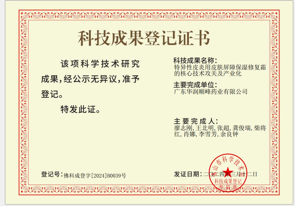 我司科研团队成功攻克特异性皮炎用皮肤屏障保湿修复霜的核心技术,并实现了产业化。经过鉴定,该技术具有国内领先水平。该成果的取得,不仅展现了我司在皮肤大健康领域科技创新的实力,也为广大特异性皮炎患者带来了福音。 未来,随着该技术的进一步推广和应用,相信会有更多患者受益。期待在这一领域取得持续性突破,为人类健康事业作出更大的贡献。